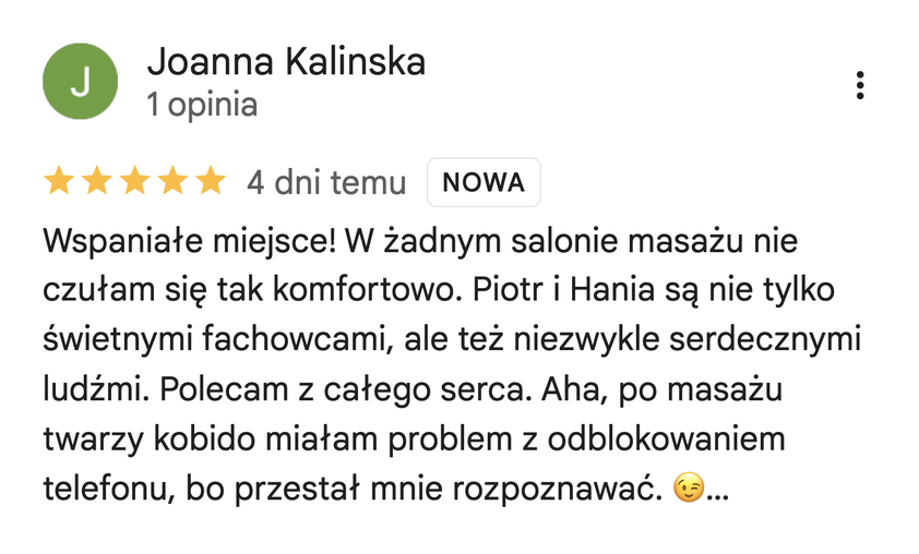 Do sprawdzenia czeka na Ciebie ponad 1400 opinii naszych klientek i klientów, którzy na własnej skórze przekonali się, co potrafimy wyczarować masażem.